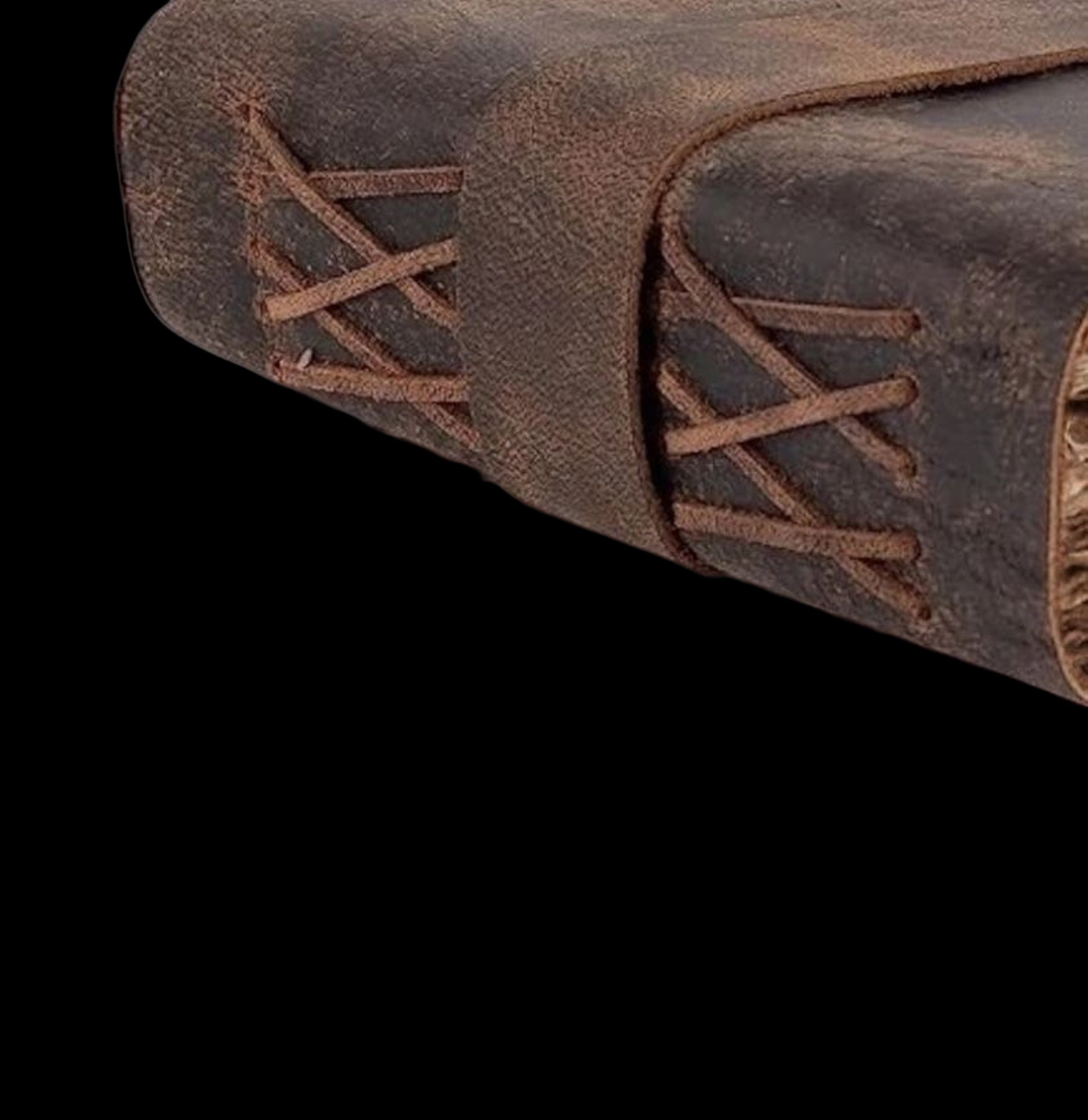 Capture your thoughts, sketches, and ideas in this Brown Leather Journal with Clasp. Made from genuine buffalo leather, it’s built to last while looking effortlessly classic. Inside, you’ll find 100 sheets (200 pages) of vintage deckle-edge paper and handmade rustic cotton pages, giving every page a unique, timeless feel. Perfect for journaling, note-taking, or creative writing, this journal combines style and durability in one elegant package.
