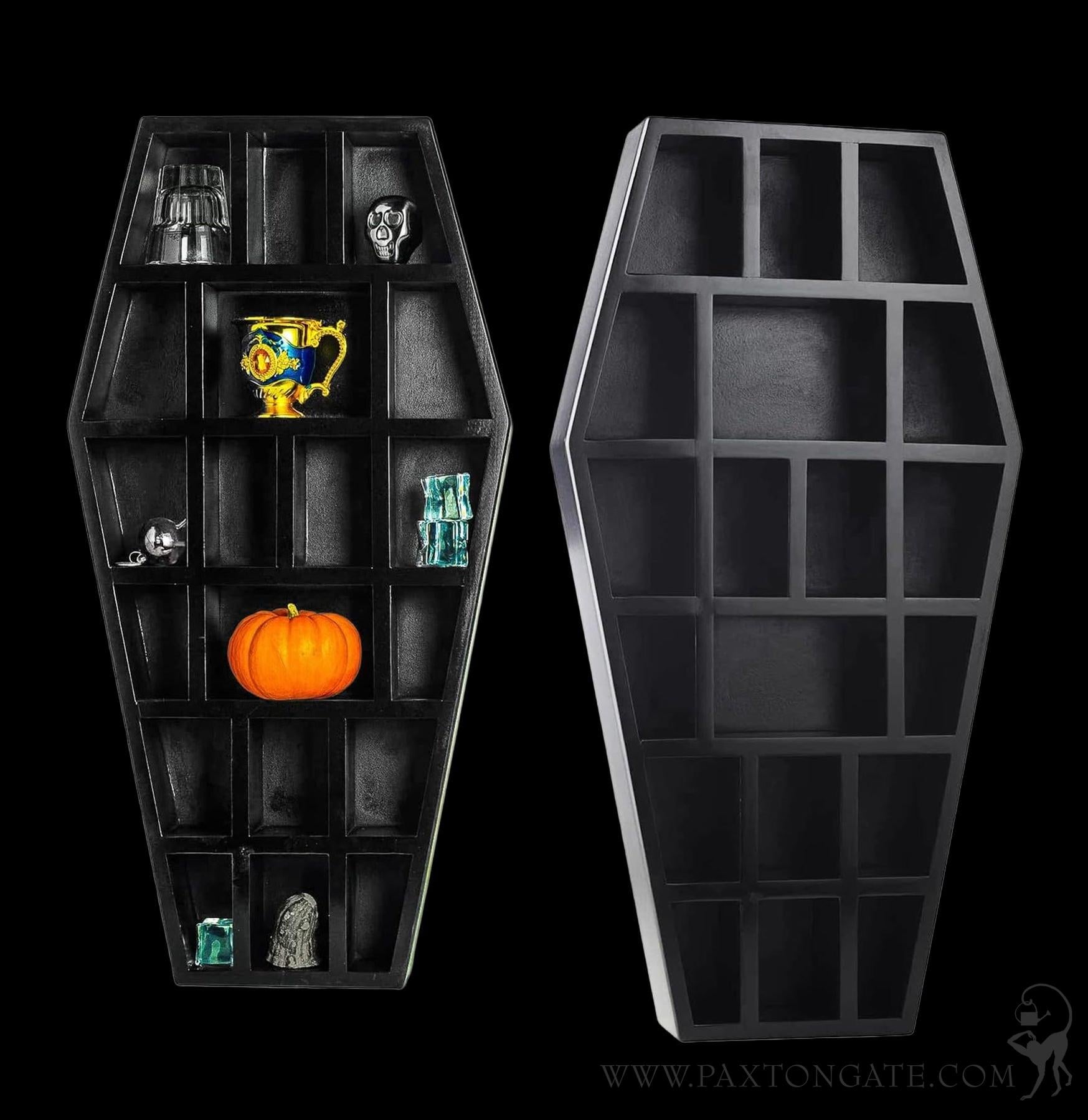 With 19 compartments, this coffin shelf is ready to hold your favorite creepy collectibles, tiny figures, books, or even beauty supplies like lipsticks. It’s the perfect mix of functional and eerie, giving your home the dark and stylish accent it’s been missing.