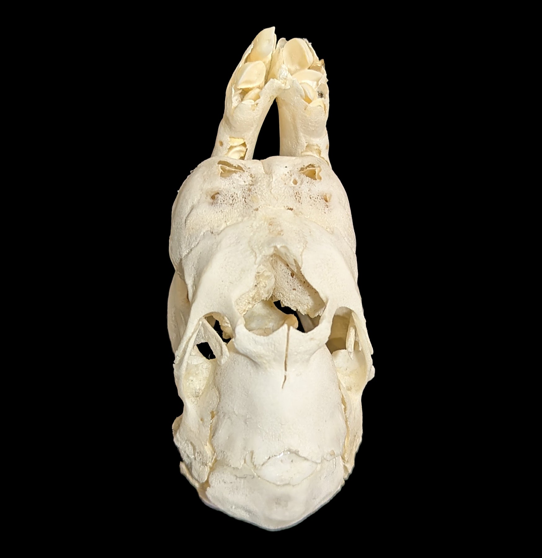 We are so excited to have this Cyclops sheep skull. A rare and fascinating example of a congenital condition called cyclopia. In this condition, the developing embryo’s forebrain fails to divide properly, leaving a single central eye socket instead of two. Most animals with cyclopia are not viable at birth, which makes surviving specimens extremely rare. This skull is a fascinating example of nature’s quirks, showing how developmental anomalies can create rare and unusual forms. It offers a real glimpse into biology in action and is perfect for anyone curious about how life can take unexpected turns.