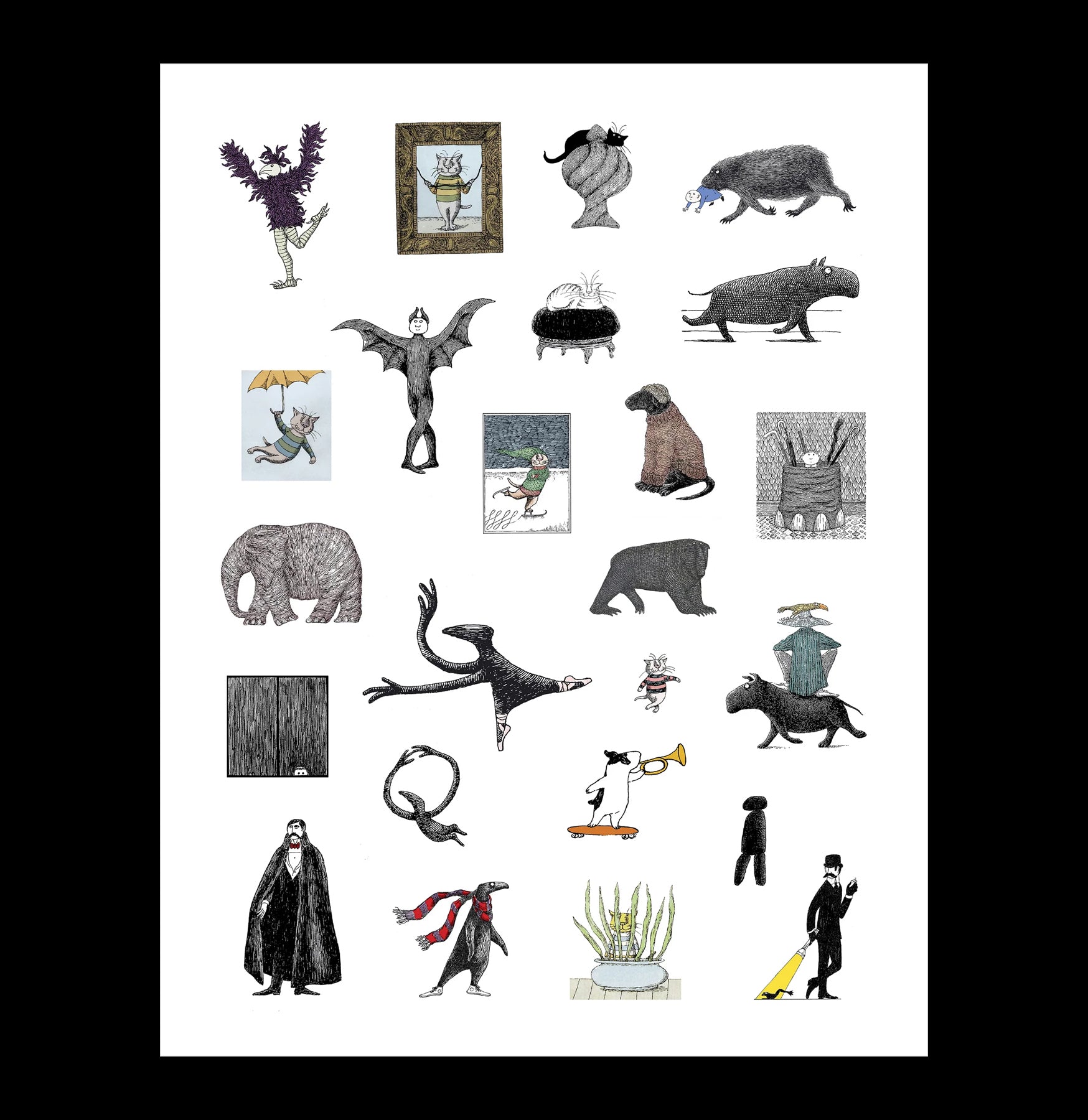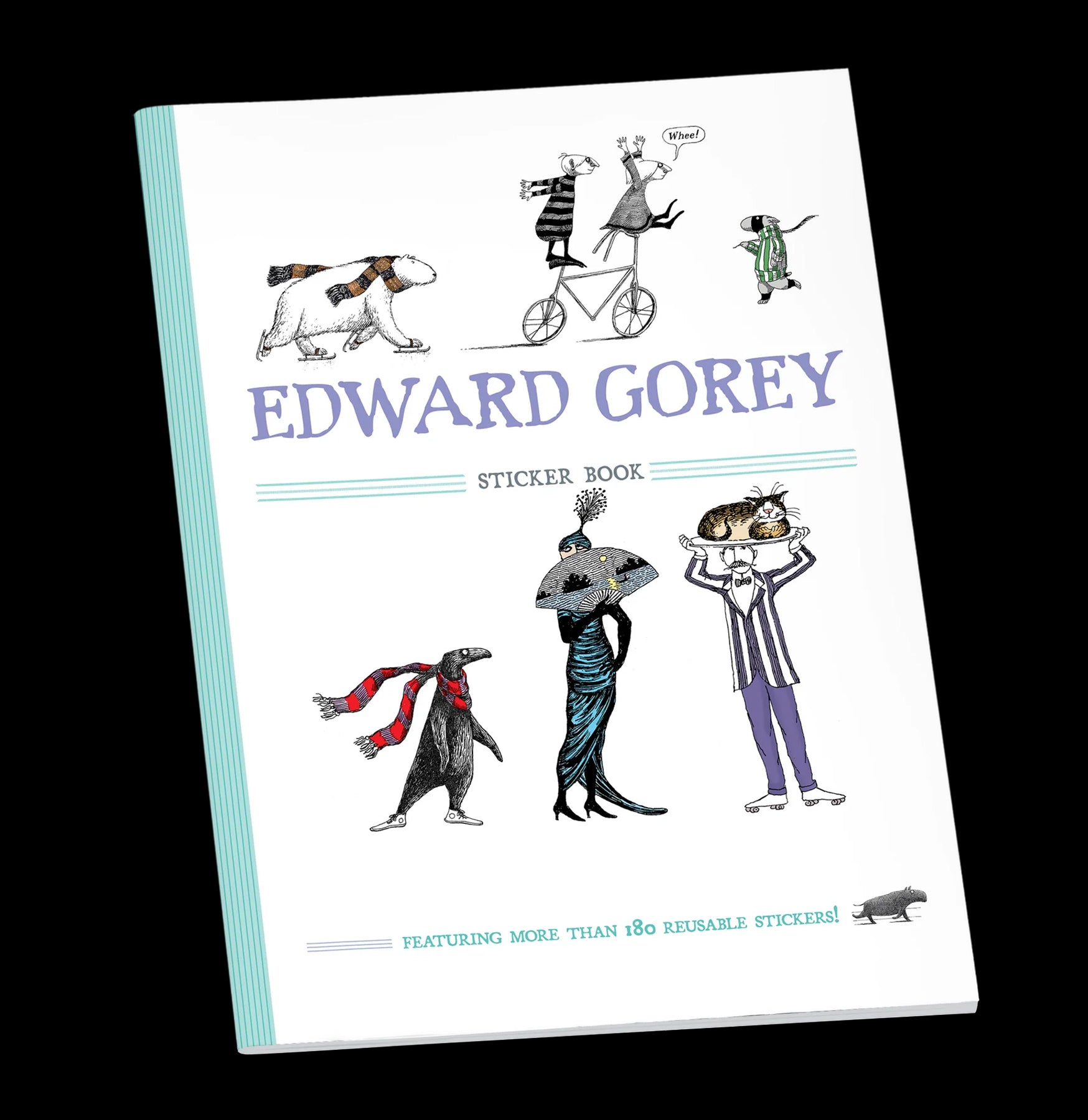 This sticker book lets you play with 50 of Gorey’s characters from several of his books, including The Black Doll, Category, Dancing Cats, The Doubtful Guest, The Epiplectic Bicycle, and The Gashlycrumb Tinies. There are 185 stickers in total, featuring Count Dracula, ice-skating polar bears and alligators, figbashes in ballet slippers, children riding strange dogs, and much more. Have fun stickering!