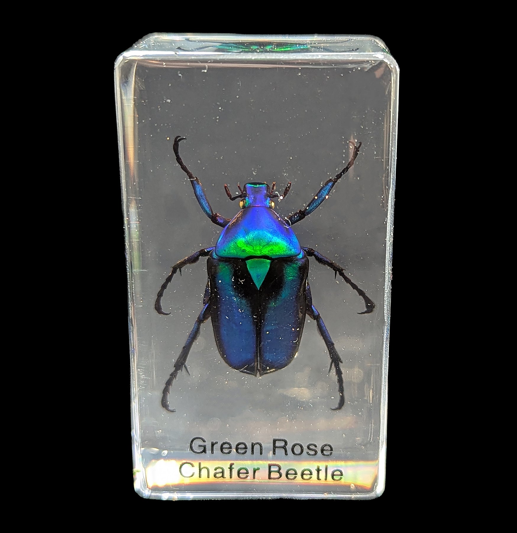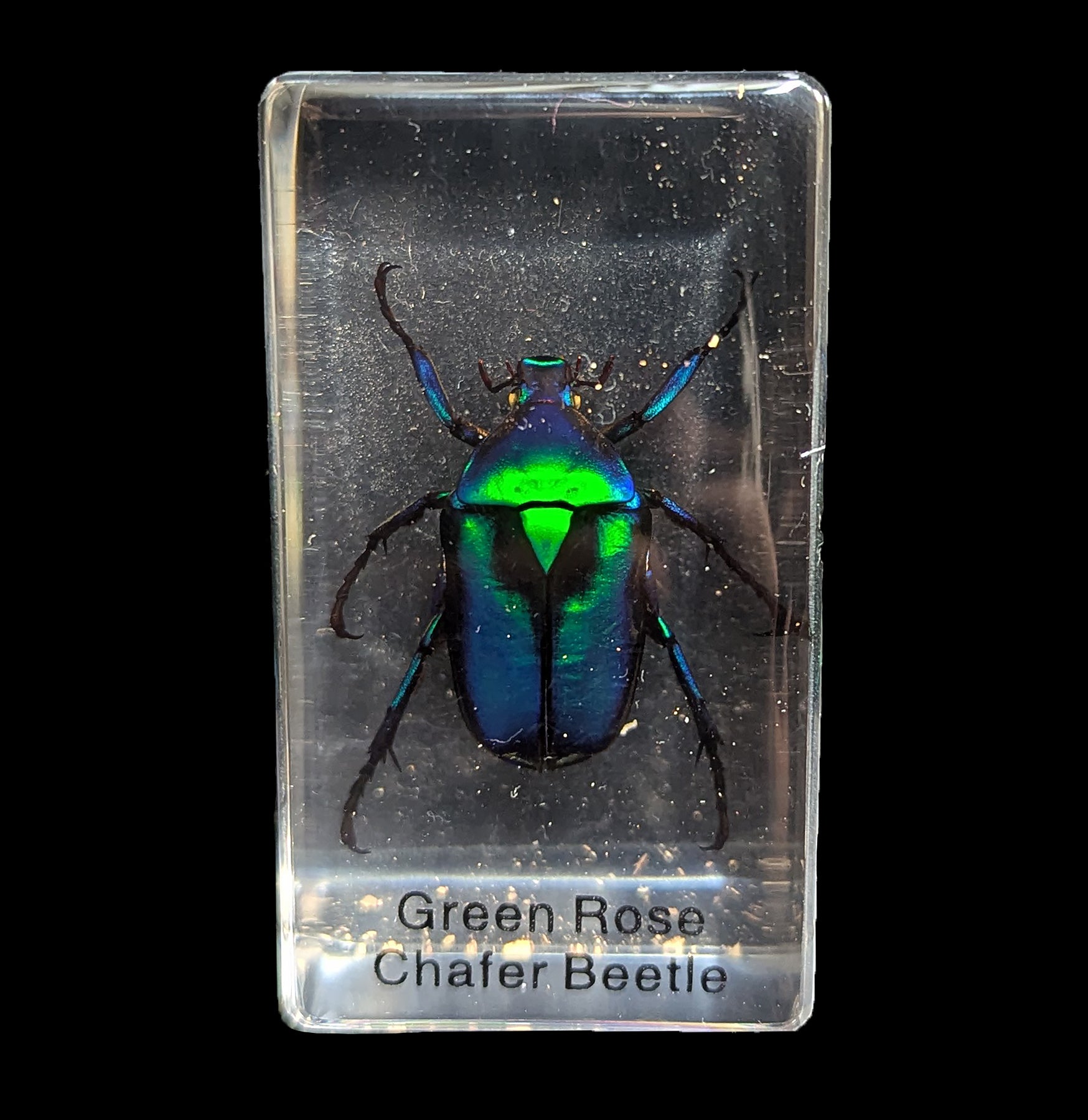A real green rose chafer beetle that is perfect for holding down your paper work or admiring said beetle when you don't want to do paperwork. Rectangle shape with clear background with Resin Material