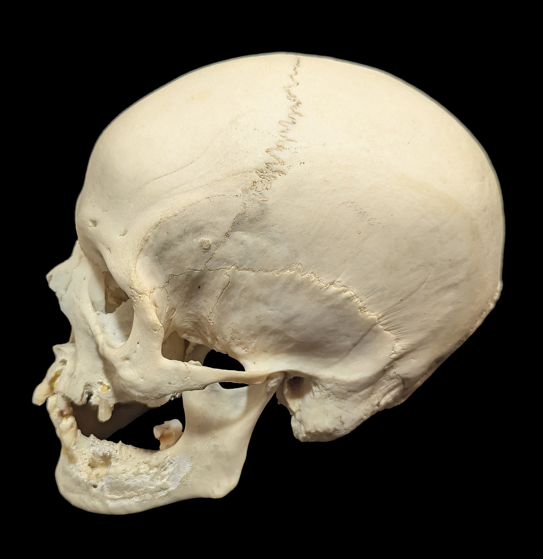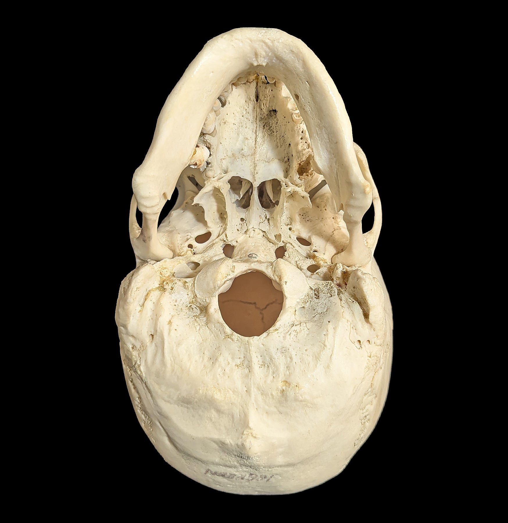 The lower portion, or mandible, functions as a hinged structure essential for mastication and communication. This specimen provides a detailed view of cranial anatomy and demonstrates the intricate design that balances protection, function, and structural integrity.