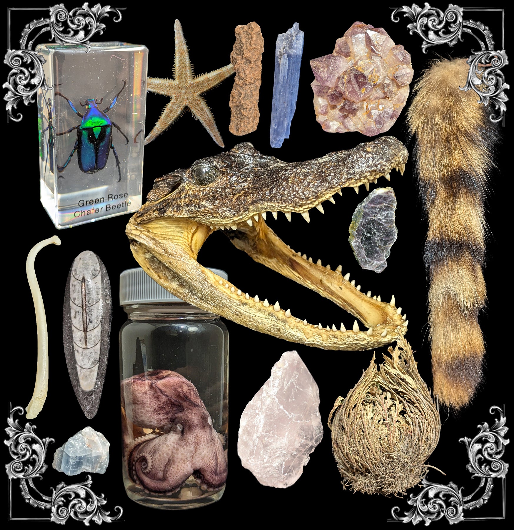 The legendary Treasure Box is back, and it’s better than ever this year! This handpicked collection of oddities, crystals, bones, and everything else Paxton Gate is an instant collection in a box. It’s the perfect gift for the curator of curios in your life or just something for yourself because, let’s face it, you deserve it. Inside is everything shown in the image here, which includes: