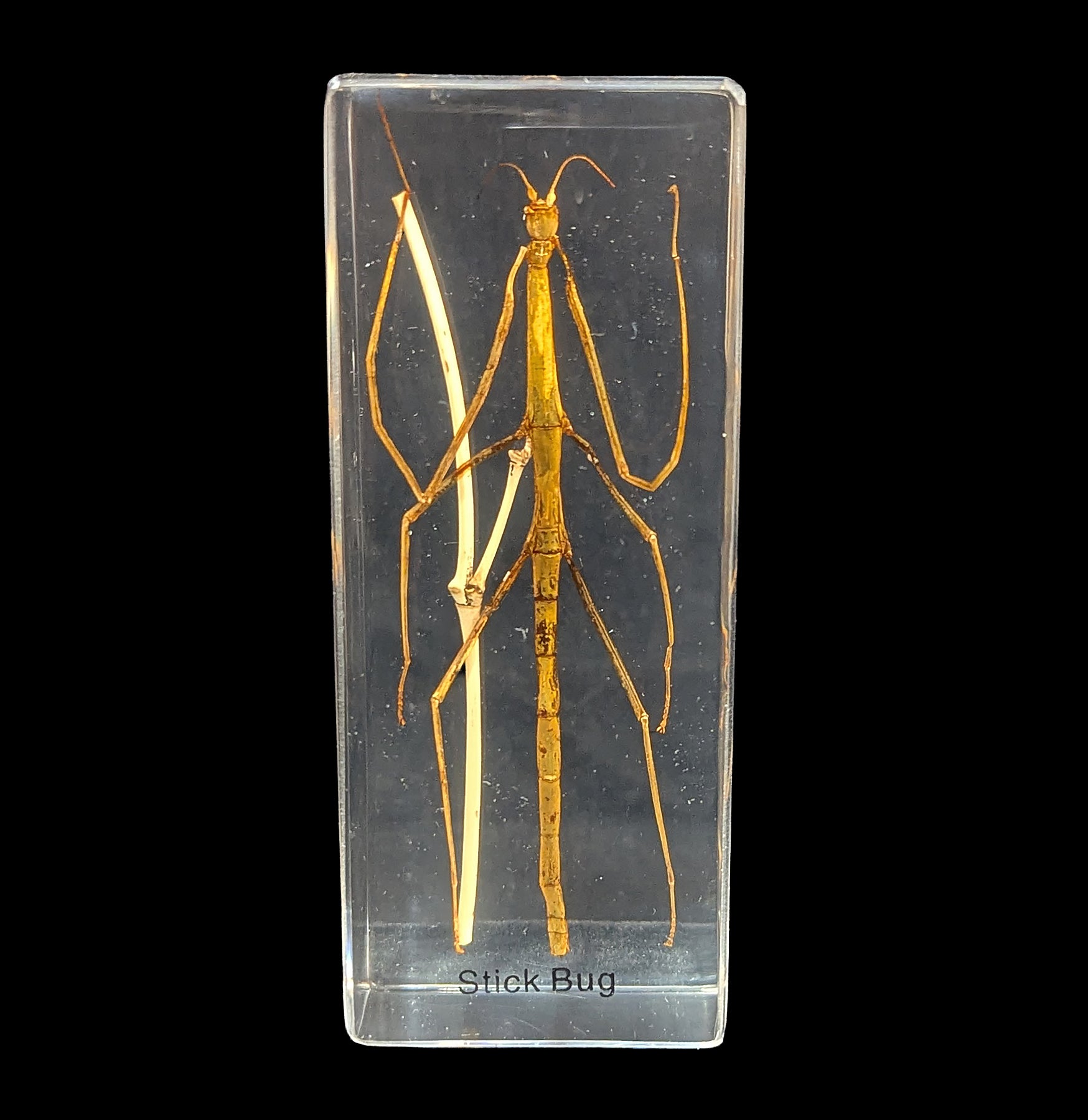 A real stick bug that is perfect for holding down your paper work or admiring said stick bug when you don't want to do paperwork. Rectangle shape with clear background with Resin Material